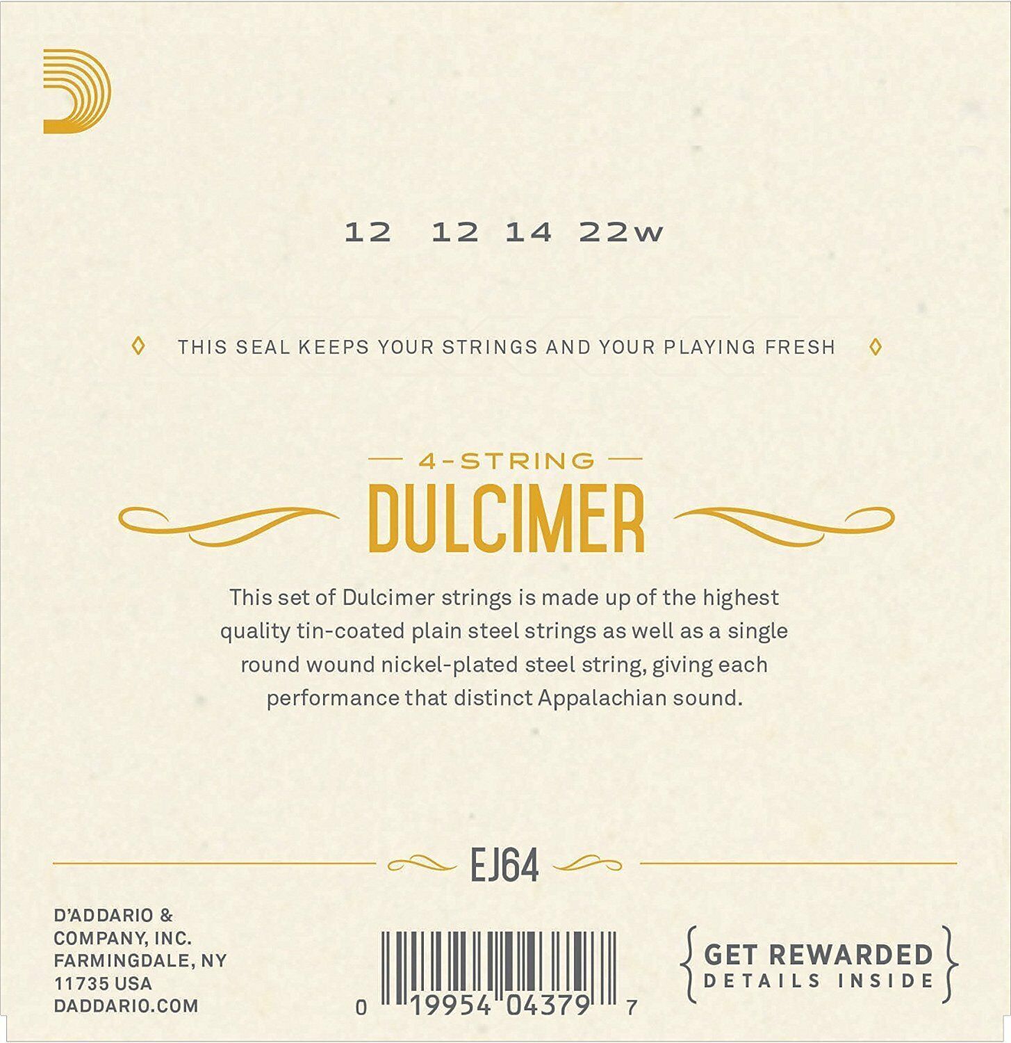 The D'Addario J64 Dulcimer 4-String Set gives you 3 plain steel stringsand one nickelplated steel wound on steel string.