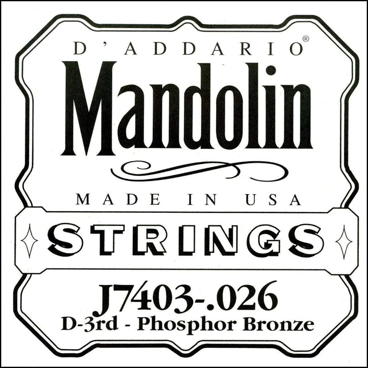 D'Addario J7403 is a .026 gauge phosphor bronze third string, an ideal replacement string for the J74 Phosphor Bronze Mandolin Set.