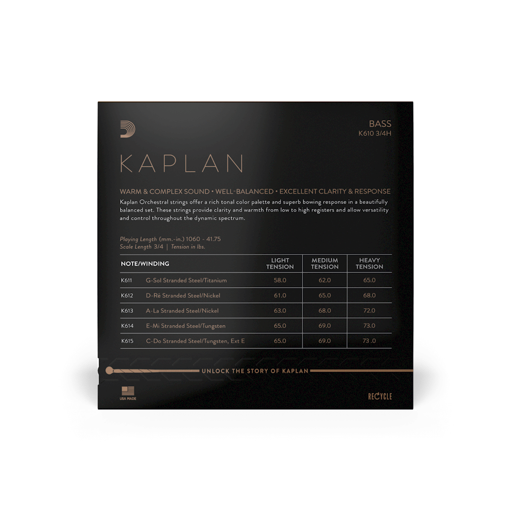 D'Addario Kaplan Bass Single C (Extended E) String, 3/4 Scale, Heavy Tension