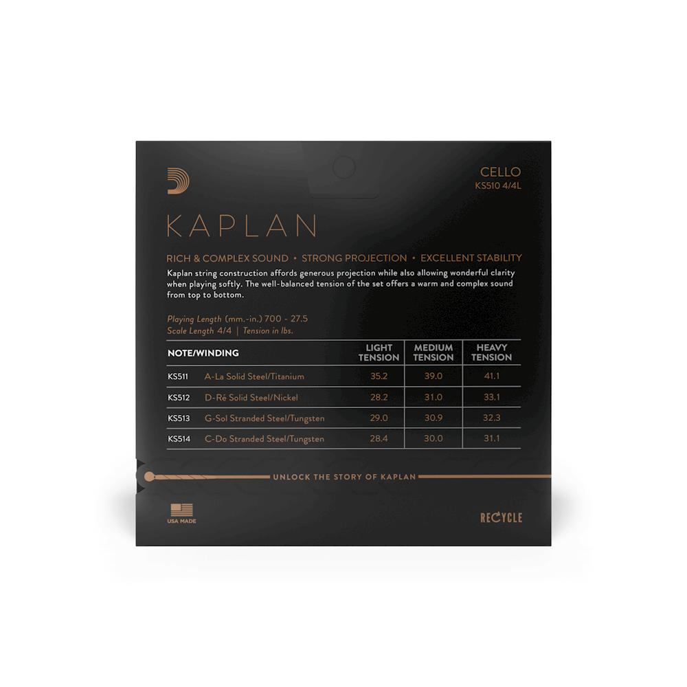 D'Addario Kaplan Cello Single D String, 4/4 Scale, Light Tension