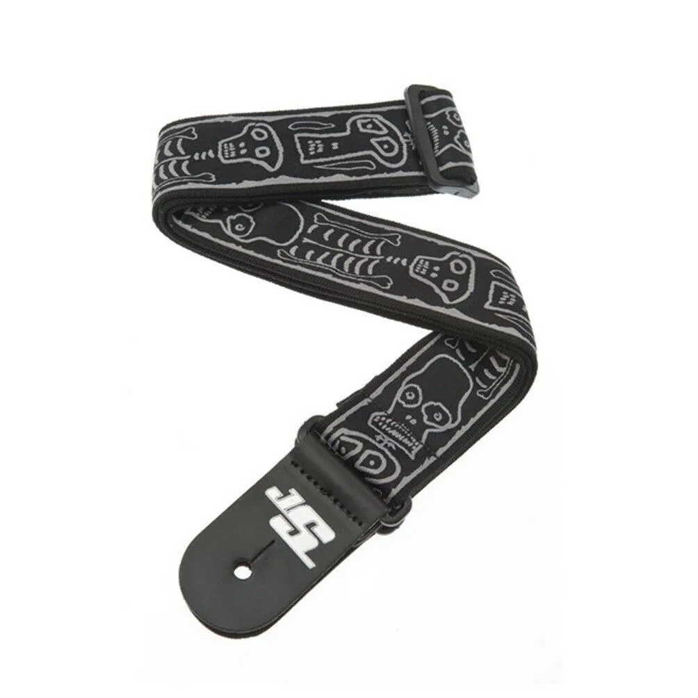 "Skulls n' Bones" artwork, sketched by Joe Satriani himself make this Planet Waves guitar strap a unique addition to any guitar.