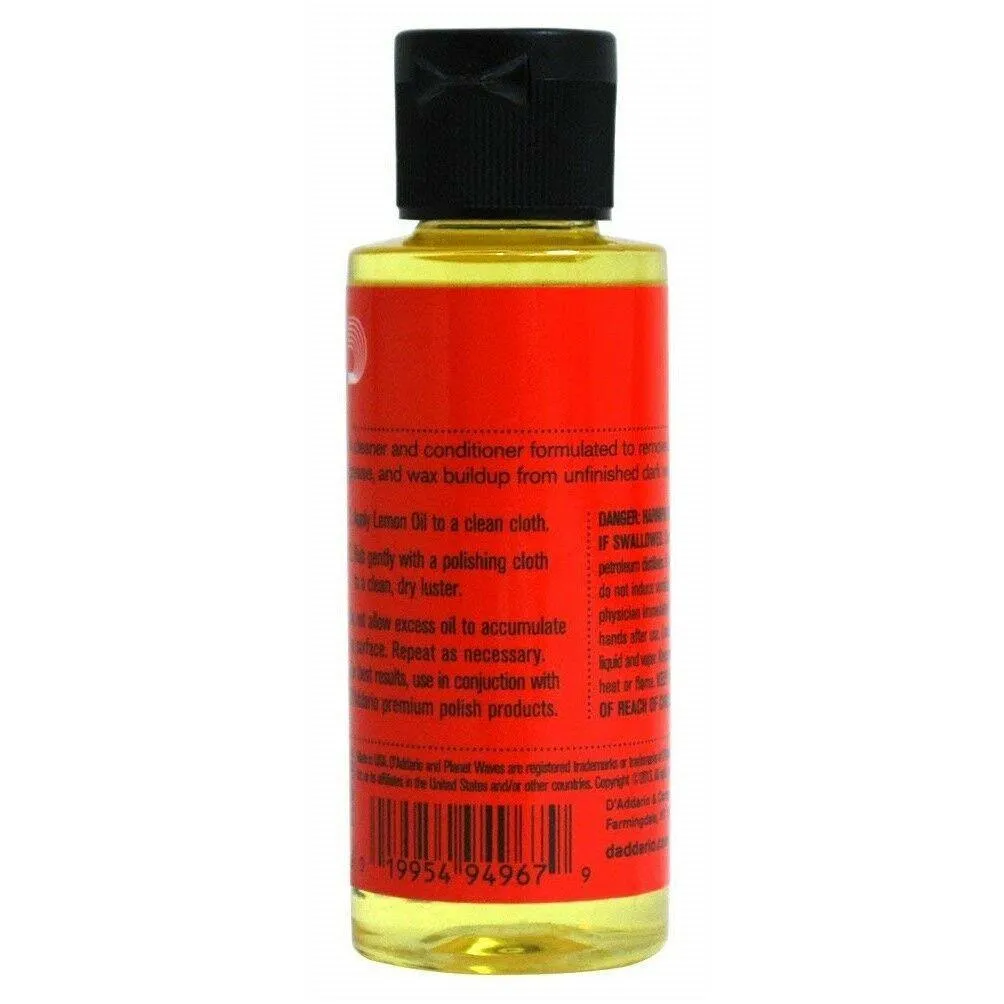 Lemon Oil by D'Addario is a natural cleaner and conditioner formulated to remove dirt, grease and build-up from unfinished woods on all string instruments. It's particularly recommended for use on fretboards and unfinished woods. Lemon Oil also helps to condition your instrument to resist dryness which can prevent cracks and extend its life.