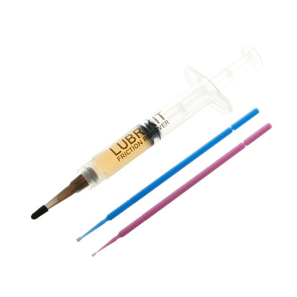 The D'Addario LubriKit is an easy to use lubricant for friction points including the nut and string saddles for all string instruments. Friction is the root cause of many tuning problems. Just a drop of LubriKit removes the friction so you can play in tune. The easy to use formula comes in a syringe style applicator along with two swabs for making it easy to get into tight spaces. Just a drop in each nut slot and string saddle allows the strings to glide effortlessly, preventing friction that can cause strings to bind and go out of tune. LubriKit can also be used for all contact points with floating bridges and string height adjustment screws.