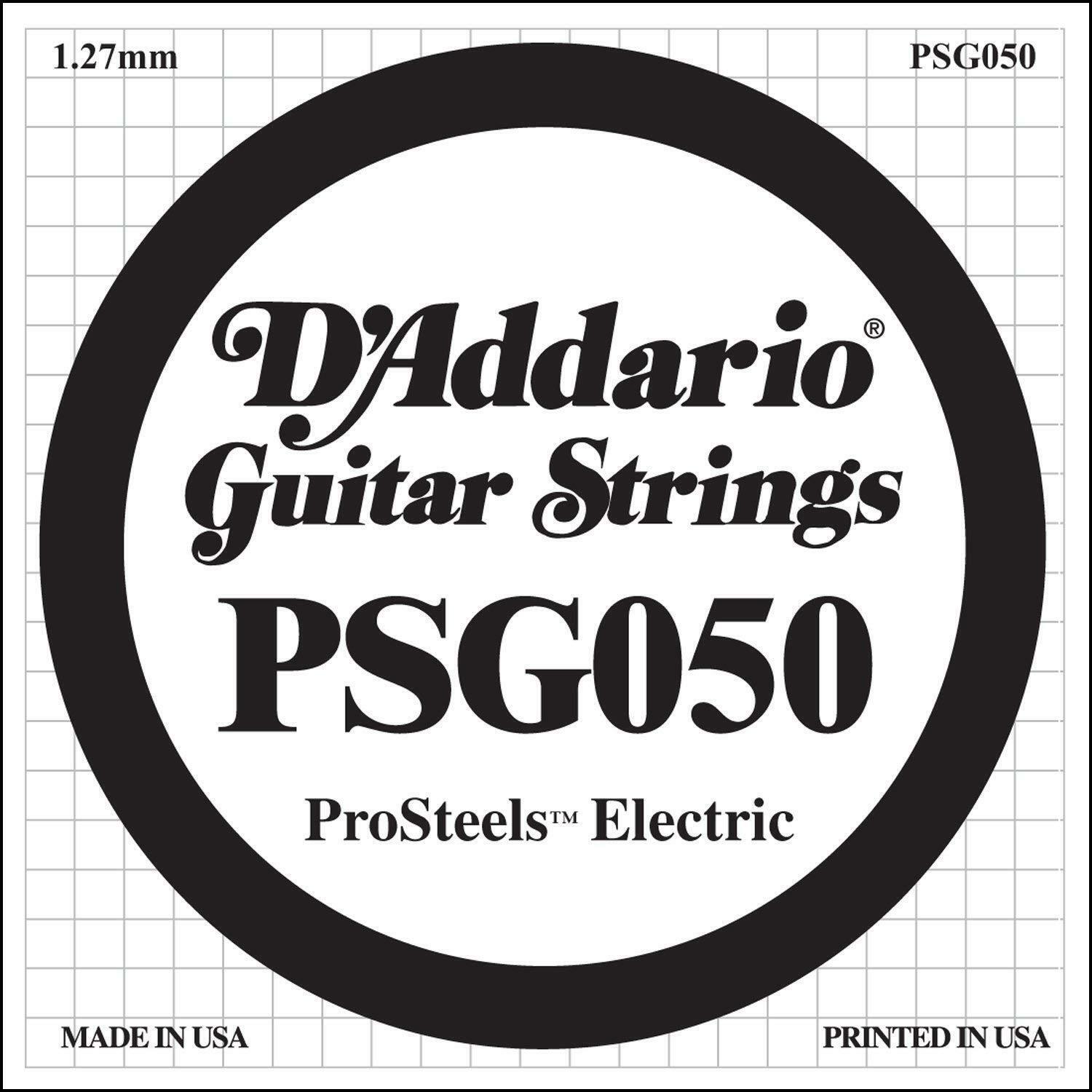 PSG050 is a .050 gauge ProSteels electric guitar string. Perfect as a replacement string or for creating custom sets. Part of the D'Addario ProSteels string series. D'Addario XL ProSteels utilize a highly magnetic, corrosion-resistant steel alloy that delivers super-bright tone without shrill overtones. They offer a palette of harmonically rich, brilliantly penetrating highs combined with pronounced, tight-and-tough lows. If you're looking for more crunch, bite, and sustain, ProSteels are the choice for you.D'Addario, the world's largest manufacturer of musical instrument strings, is known as The Players Choice with a reputation for unsurpassed quality and consistency. All D'Addario strings are manufactured in the U.S.A. using proprietary, digitally controlled, state-of-the-art machinery for unmatched performance, set after set.
