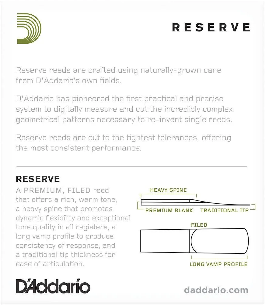 D'Addario Reserve Soprano Saxophone Reeds, Strength 2.5, 10-pack