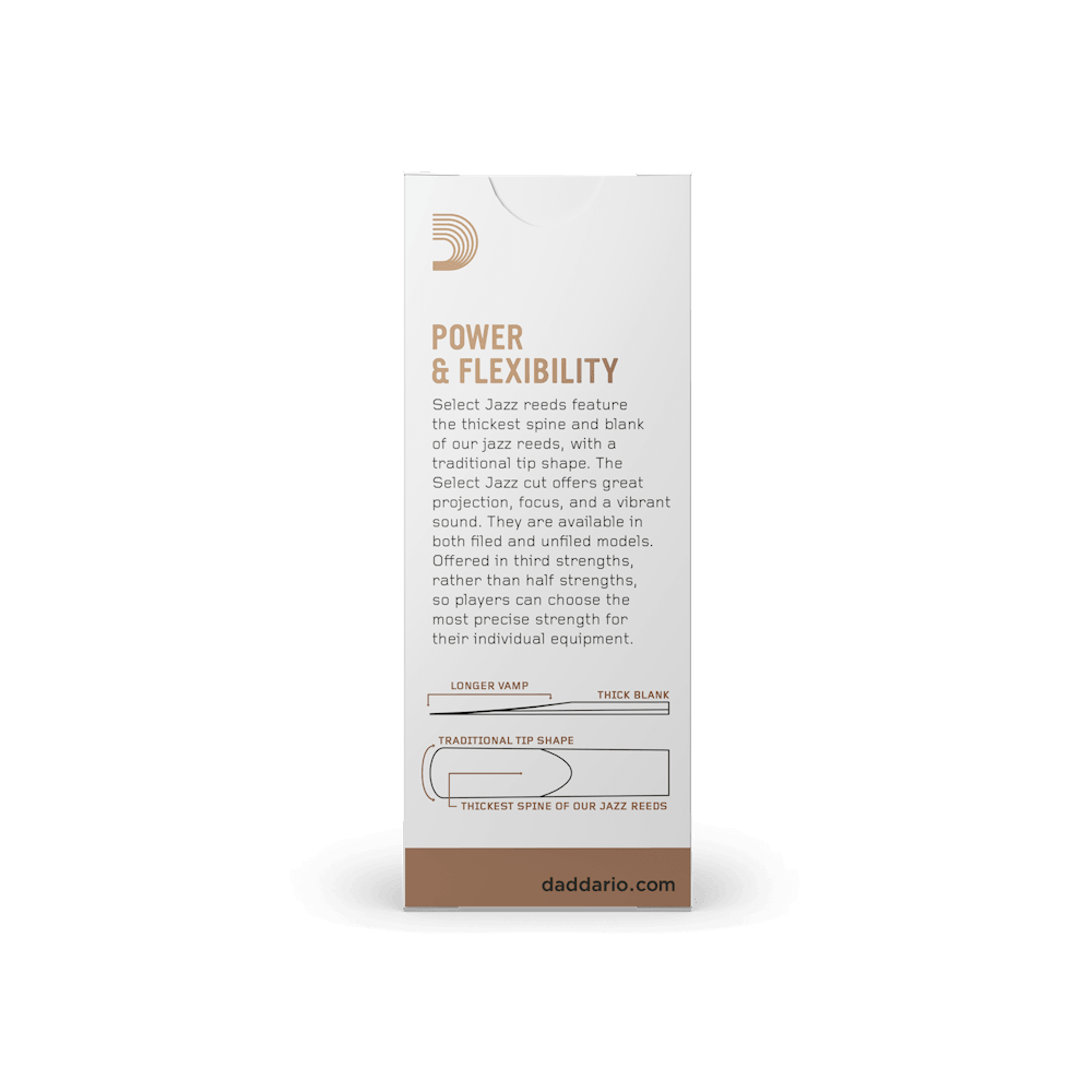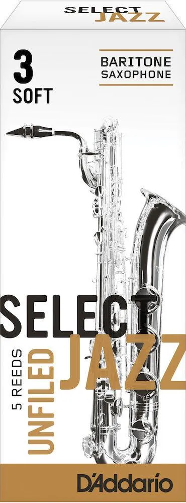 D'Addario Select Jazz Unfiled Baritone Saxophone Reeds, Strength 3 Soft, 5-pack