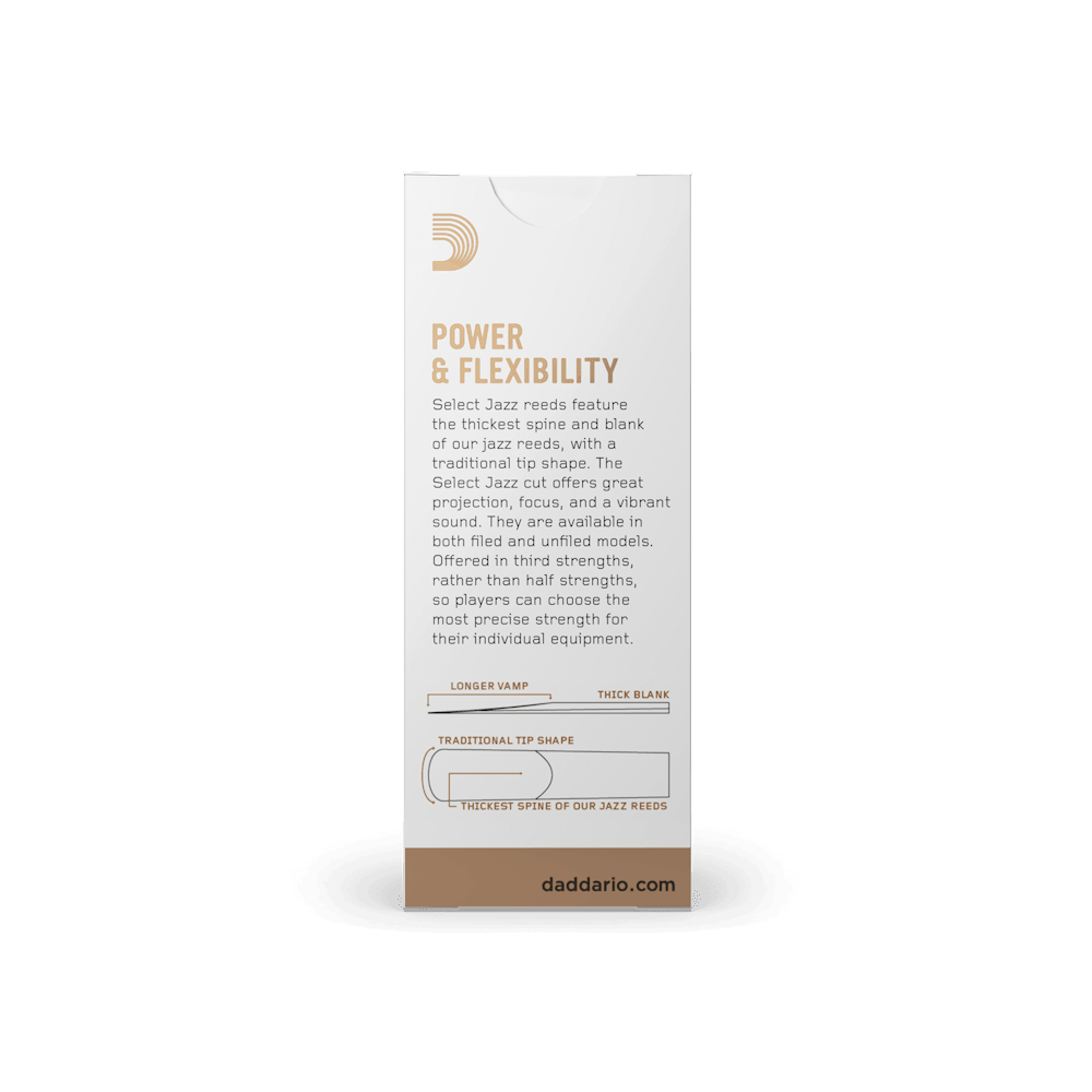 D'Addario Select Jazz Unfiled Tenor Saxophone Reeds, Strength 3 Soft, 5-pack