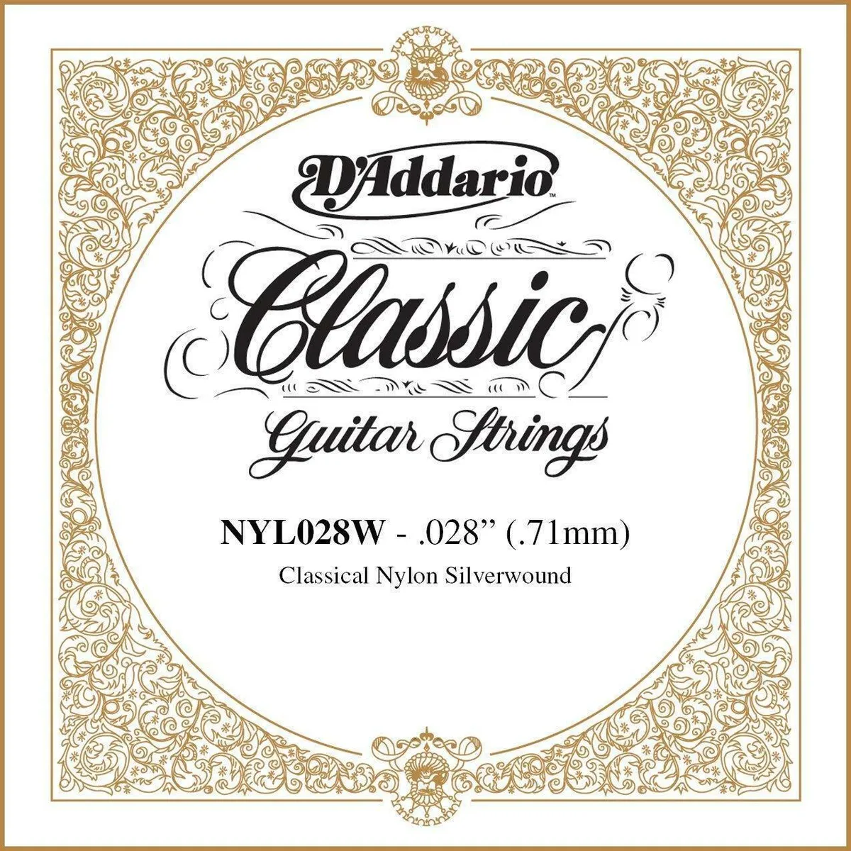- D'Addario NYL028W is a .028 gauge silver-plated copper wound single string