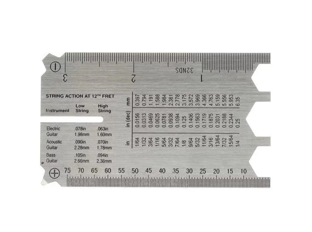 The D'Addario String Height Gauge is an all-in-one tool to help you set up your guitar with the highest possible level of precision. Made of stainless steel, this durable tool helps you easily measure the height of your strings and pickups, neck relief, and other critical measurements. With access to these measurements all in one place, getting your guitar into its best playing form has never been easier.