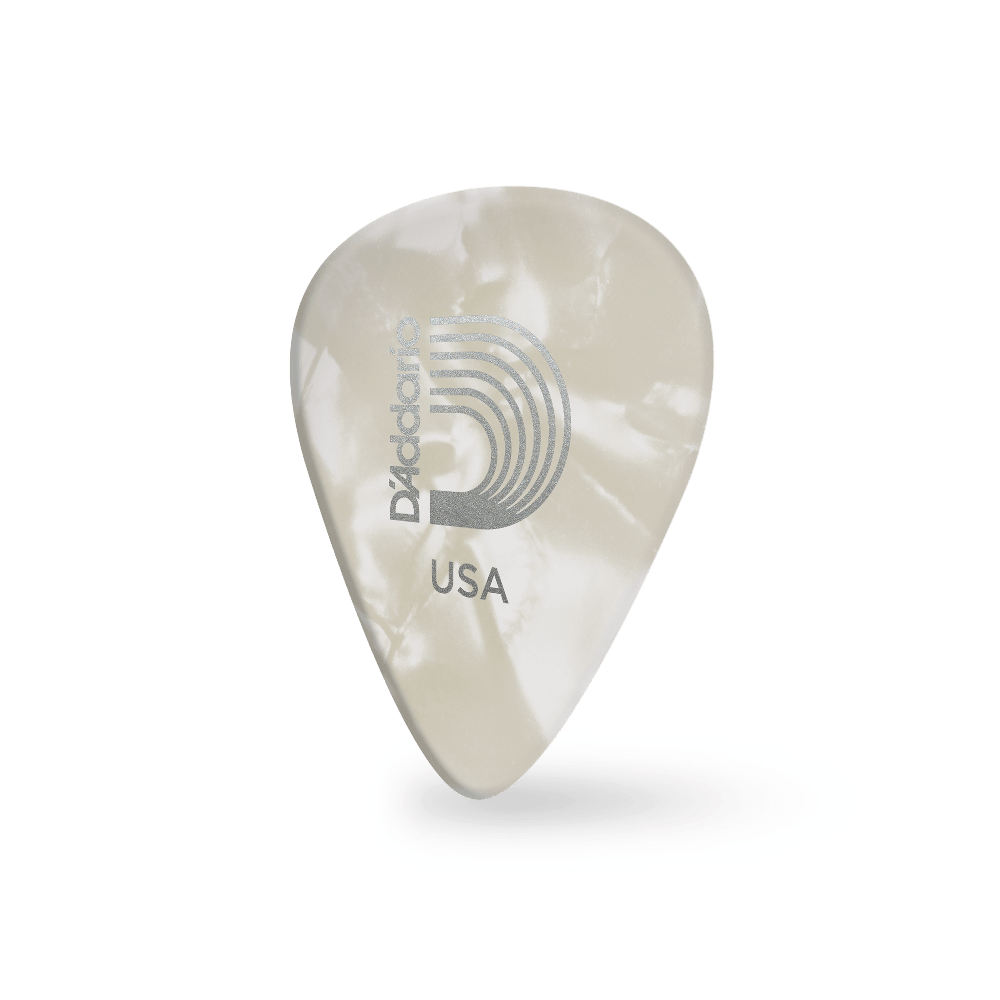 D'Addario White Pearl Celluloid Guitar Picks, 25 pack, Extra Heavy