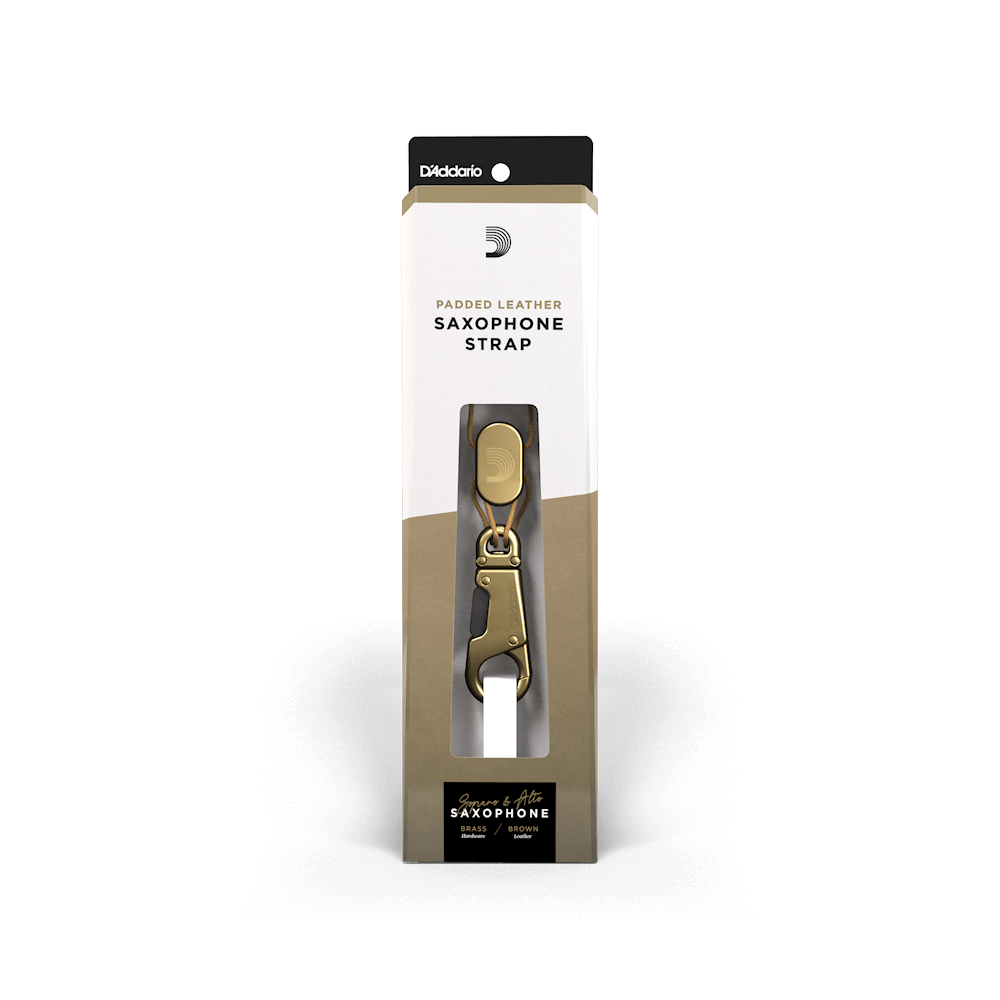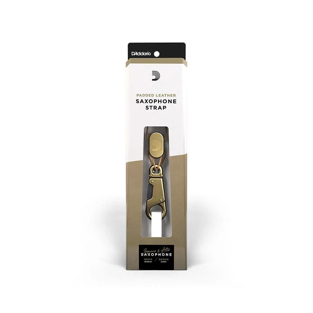 D'Addario Woodwinds Padded Leather Neck Strap, Soprano/Alto, Brown/Brass
