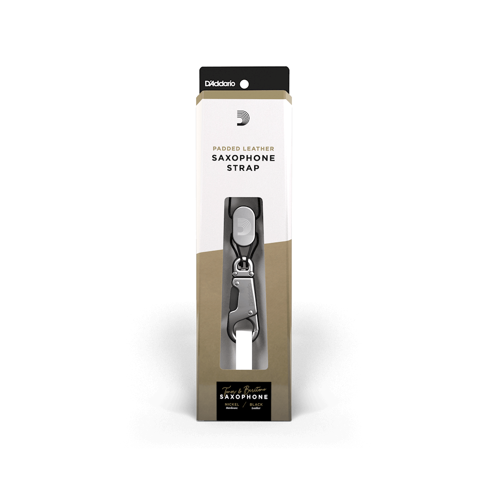 D'Addario Woodwinds Padded Leather Neck Strap, Tenor/Baritone, Black/Nickel