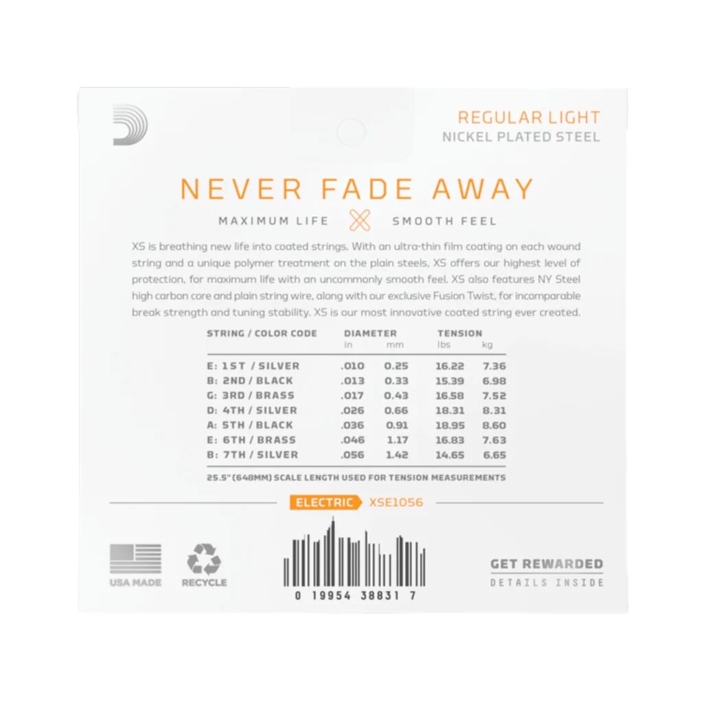 D'Addario XSE1056 Electric Guitar Strings 7-String Coated XS 10 - 56 Light