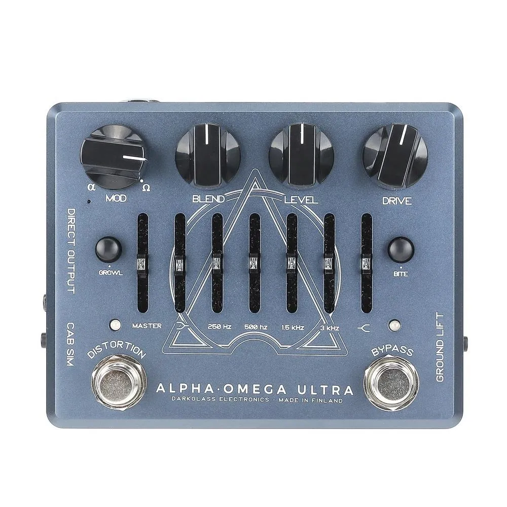The Darkglass Alpha·Omega Ultra might be one of the most versatile bass preamps ever. At its core are two discrete distortion circuits that allow you to explore exciting tonal frontiers while reveling in boundless dynamic range. Sculpt fresh sonic textures with a 6-band active graphic EQ. Then pipe everything through a single-user digital impulse-response cabinet emulation. You're in complete command with Bypass and Distortion footswitches that allow separate use of the Alpha·Omega Ultra's distortion and EQ. And thanks to its 1/8-inch Aux input, this is the perfect solution for practicing along with guide tracks from your mobile device or computer. The Alpha·Omega Ultra also includes a headphone output, switchable ground lift, and a Micro-USB B port for loading new virtual cabinets from your Mac or PC.
