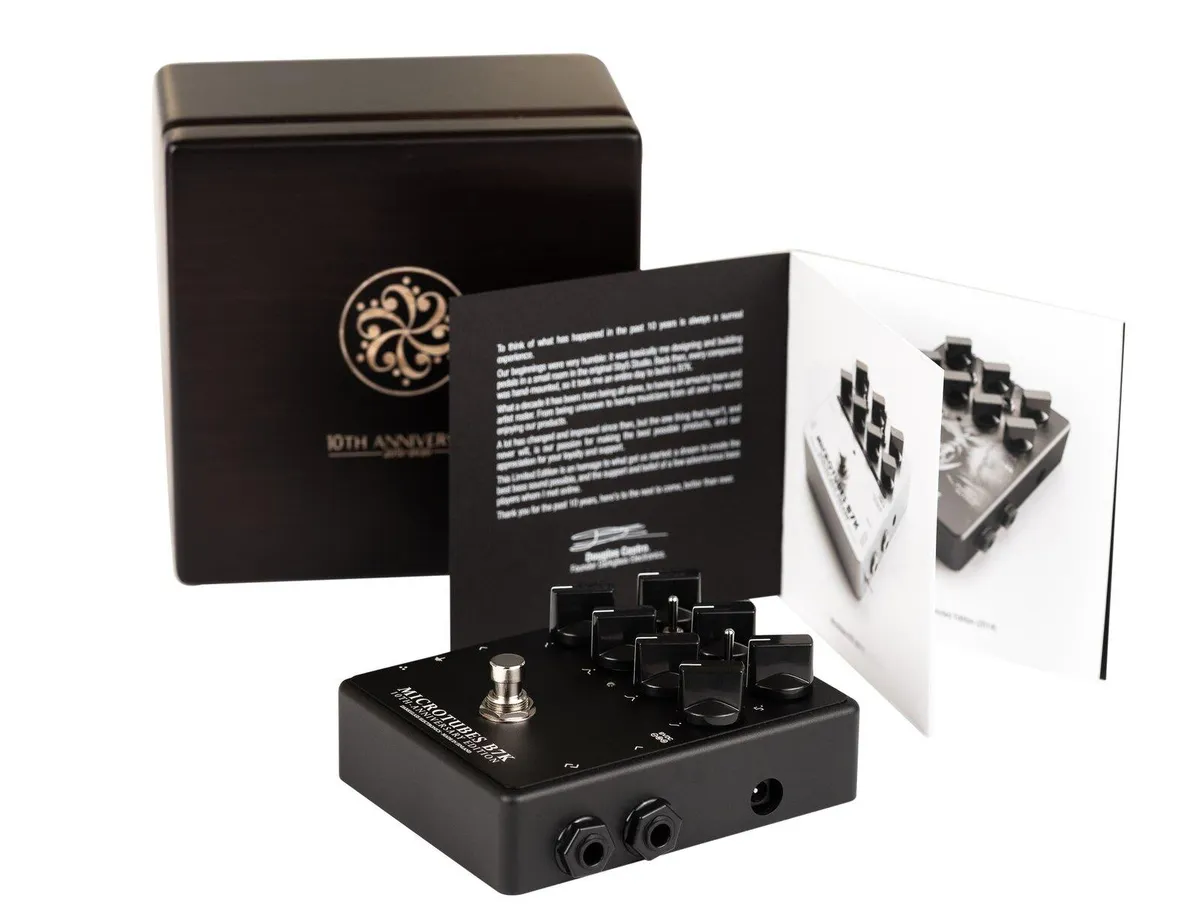 The Microtubes B7K, a pedal that changed both our lives and our bass sound as we know it, has now surpassed its first decade. An innovative distortion immediately embraced by musicians around the world now represents the foundation of the Darkglass tone, after which followed a decade of iteration marked by a strong stamp of passion and desire for tone.This limited edition is a celebration of the pedal that got us started - this is a tribute to every bass player that believed in the adventure of cutting into the mix and a commendation for the incredible support and loyalty that we have received since our humble beginnings.The exclusive minimal design of the 10th Anniversary Edition features a black obsidian enclosure and textless icon-only engraving, contained within a finely crafted wooden box.