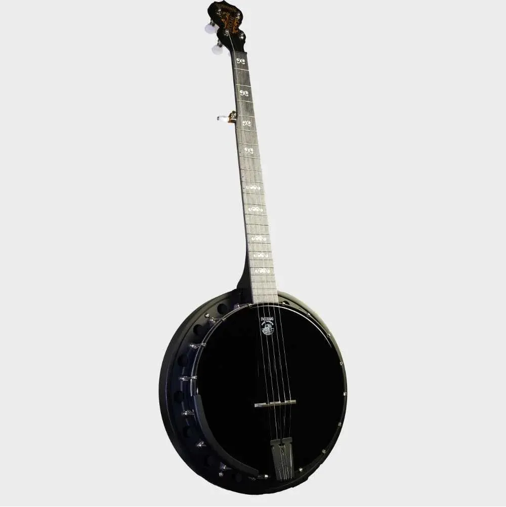 The Goodtime Blackgrass Special has a pure black stain and black head, the same as the Goodtime Blackgrass, but this model features a tone ring to give it a brighter, richer tone.