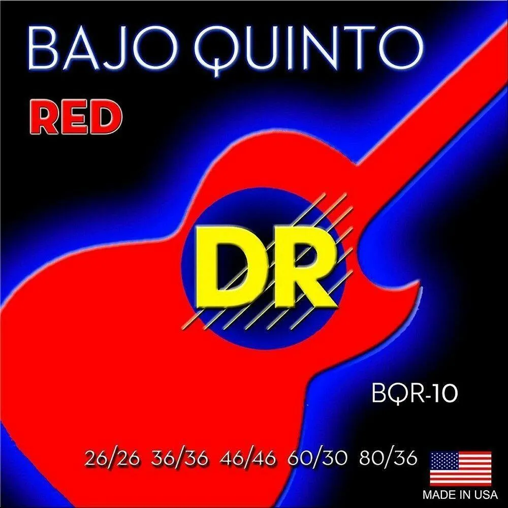 DR Strings BQR-10 Bajo Quinto Neon RED Coated10 String SetDRStrings BQR-10 Bajo Quinto Neon RED Coated 10 String SetRoundCore with Loop Ends K3™super bright color designed to sound clear, bright and musical. Inorder to create a very unique Bajo Quinto set, we have used fourdifferent materials which are Stainless Steel and Nickel Plated Steelwith K3™ Color plus a combination core wire. .060 & .080 - Stainless Steel bass strings are round wound and constructed upon a round core with loopends. Both of these strings will provide highly flexible and musicallybright and warm strings. .026, .036, .046, .030 - stringsare Nickel Plated Steel on a Hex core with loop ends. All4 strings will compliment with the Nickel bass strings with highlywarm and bright sound. DRNEON™ is applied to provide a long lasting string with a super brightglow. Bright in the day light, or under stage lighting. DR NEON™ BajoQuinto strings "pop" in appearance, sparkle brightly, and are blacklight active plus glow amazing under UV lighting. At Strings for less we aim to provide you with finest range of qualitymusical instrument strings at low prices. With over 4,000 factory fresh sets of strings in stock, you can alwaysfeel confident we have what you want in stock, fresh, and will shipstraightaway. Not only will we ship straight away, we will also supply tracking toyou, even on one set of strings. Your satisfaction with your order and our service is veryimportant to us. |