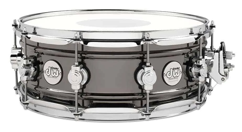 The 14x5.5 DW Design Series Black Nickel over Brass Snare Drum (DDSD5514BNCR) has a thin industry-standard 1mm shell and plated with sleek black nickel. This DW Snare Drum is a versatile workhorse snare. Suitable for a variety of musical applications, it offers that sought-after classic studio brass snare sound for Rock, Jazz, and beyond with a very affordable price.