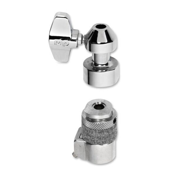 This clutch splits into two pieces, but not like a normal clutch. The bottom piece contains the entire assembly holding the bottom cymbal, while the top section only grabs the rod. Take them apart and you're left with a bottom cymbal still in the clutch, but only with a half-inch sticking out the top.