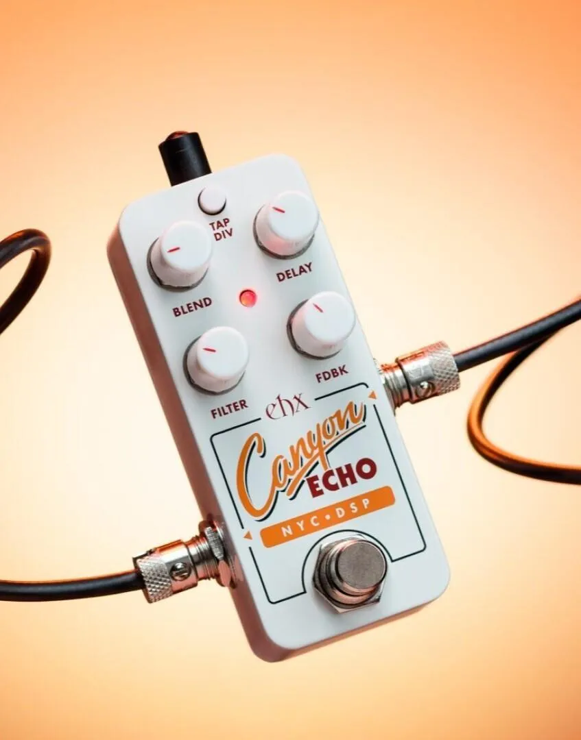 The EHX Pico Canyon Echo takes the digital delay from the award-winning Canyon Delay and Looper and plates it up as a single serving echo unit. Starting with a crystal clean delay, the Canyon Echo is a sweetly simple delay with 3 seconds of delay time. Don’t let the size fool you, this canyon is deep! Add filtering, tap tempo, and a feedback knob capable of infinite repeats and this little echo is up to most time bending tasks.