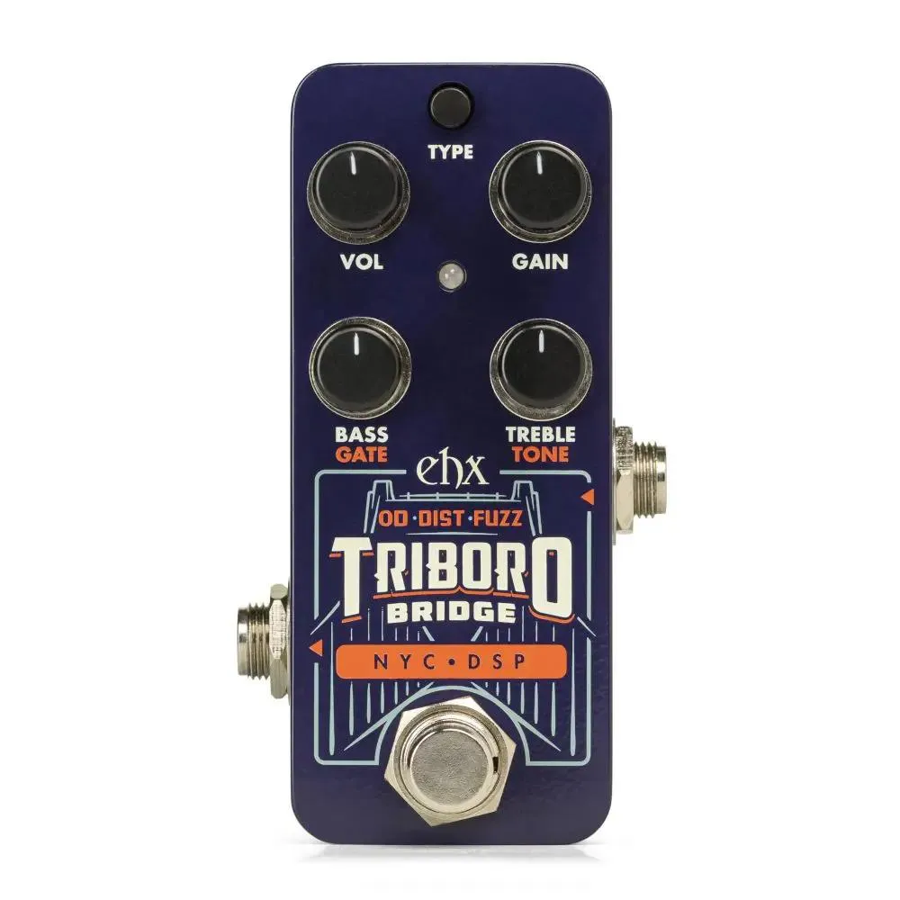 The EHX Pico Triboro Bridge is a tri-mode drive box with a wide range of tonal possibilities. Featuring Overdrive, Distortion, and Fuzz modes, it bridges any gap in your gain. With a powerful EQ, input contouring, and a pico-sized footprint, the Triboro Bridge can be your tonal keystone or a welcome change from the routine drive.