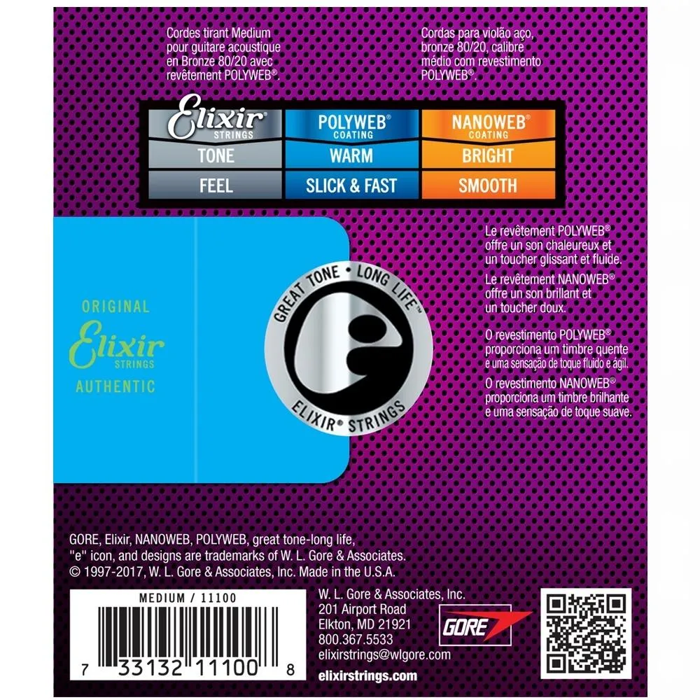 Elixir Polyweb Medium 80/20 Bronze Acoustic Strings Features at a Glance: