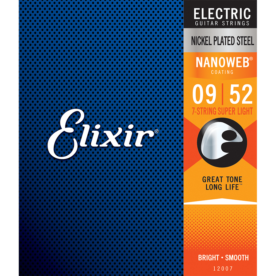Elixir 12007 Nanoweb Electric Guitar Strings - .009-.052 Super Light 7-string