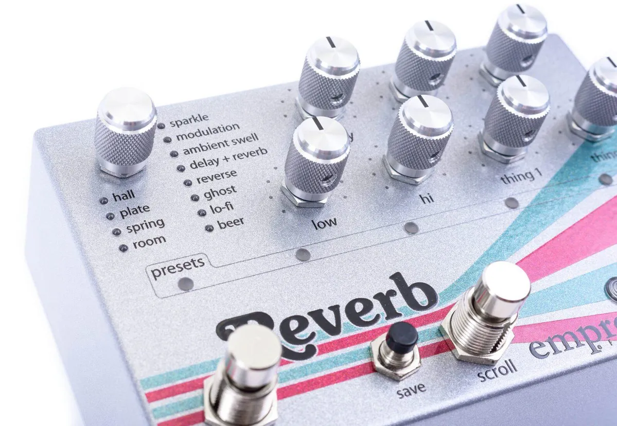 - 32 studio quality algorithms as of firmware 6.0 and counting - The pedal has 12 algorithm types, some include multiple variations. For example, vintage and studio plate, dark and bright springs. Also, as more algorithms get added you can update your pedal via the SD Card. It's the pedal that keeps on giving.