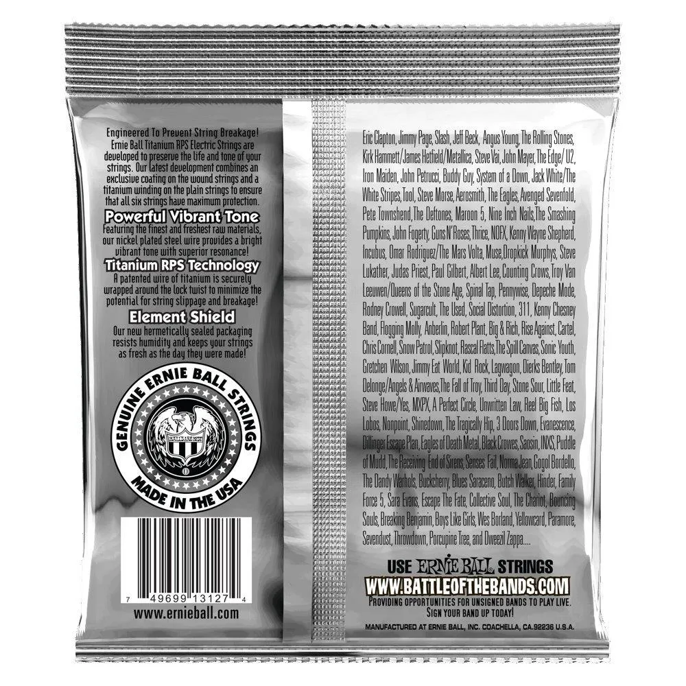 The Ernie Ball Beefy Slinky Coated Titanium RPS Electric Guitar Strings combine the latest technological advancements in string manufacturing. All wound strings are treated with ground-breaking nanotechnology that repels unwanted moisture and oils that negatively impact your tone. In addition to treating the wound strings, each plain string features a patented reinforcement winding of titanium wire. Titanium's inherent strength prevents string breakage, string slippage and is proven to keep your guitar strings in tune better than conventional plain strings. Ernie Ball Slinky Coated guitar strings maintain the feel and sound of uncoated sets, combining the added protection with the vibrant tone.