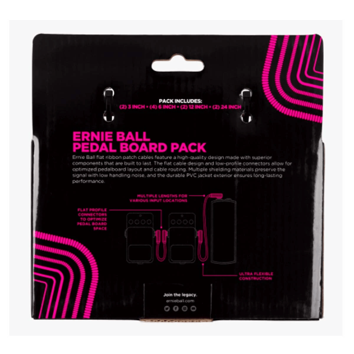 Ernie Ball Flat Ribbon Patch Cables Pedalboard Pack 10 Cables - White