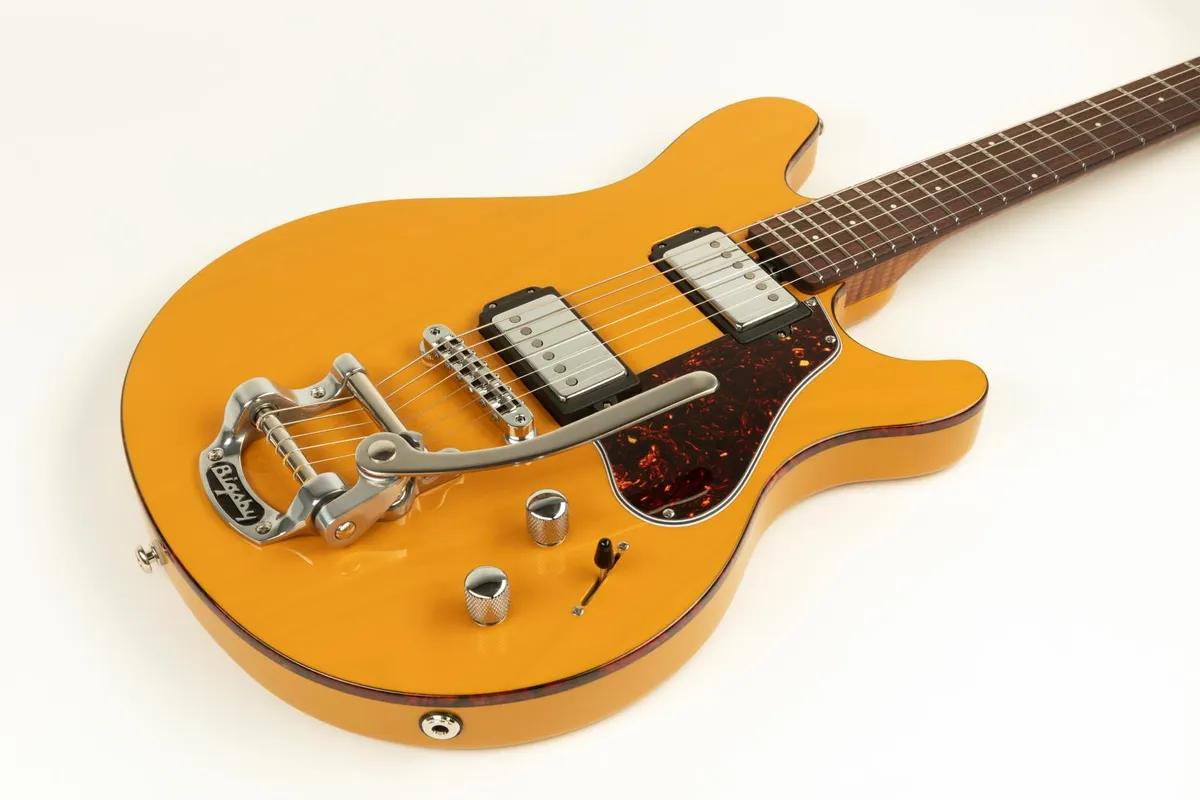 - Vintage-tinged warbles and expressive bends courtesy of a Bigsby B5 floating tremolo