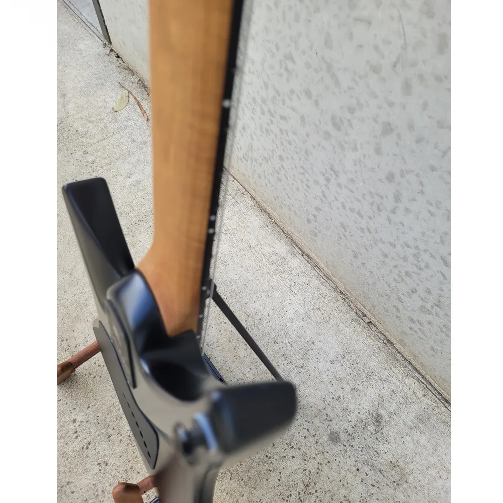 Tosin and Music Man spared no detail when designing the Kaizen. The guitar has an ebony fingerboard, 24 multi-scale stainless steel frets, and a 24.75 to 25.65-inch scale length. Multi-scale frets offer better intonation, keep the low strings at a higher tension, and allow the higher strings to bend with ease. The Kaizen also has Steinberger gearless locking tuners that keep the strings arrow-straight from the tuning machine, all the way to the bridge. This design choice ensures that you enjoy outrageous tuning stability under all playing conditions. Speaking of the bridge, Kaizen has a custom-designed multi-scale tremolo bridge and tailpiece for even more expressive playing.