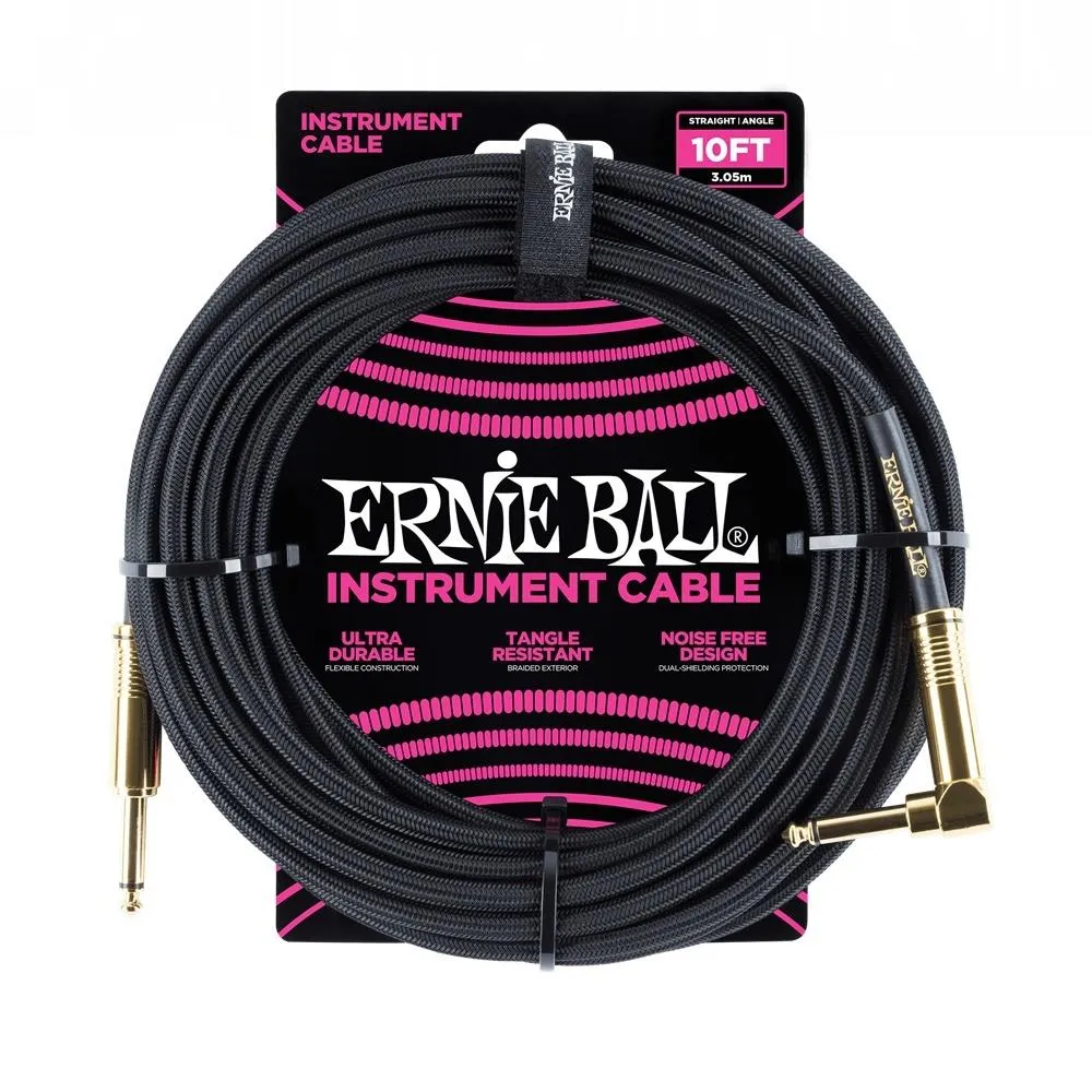 Ernie Ball Straight / Right Angle Instrument Cable - 10 foot Black Gold Tip