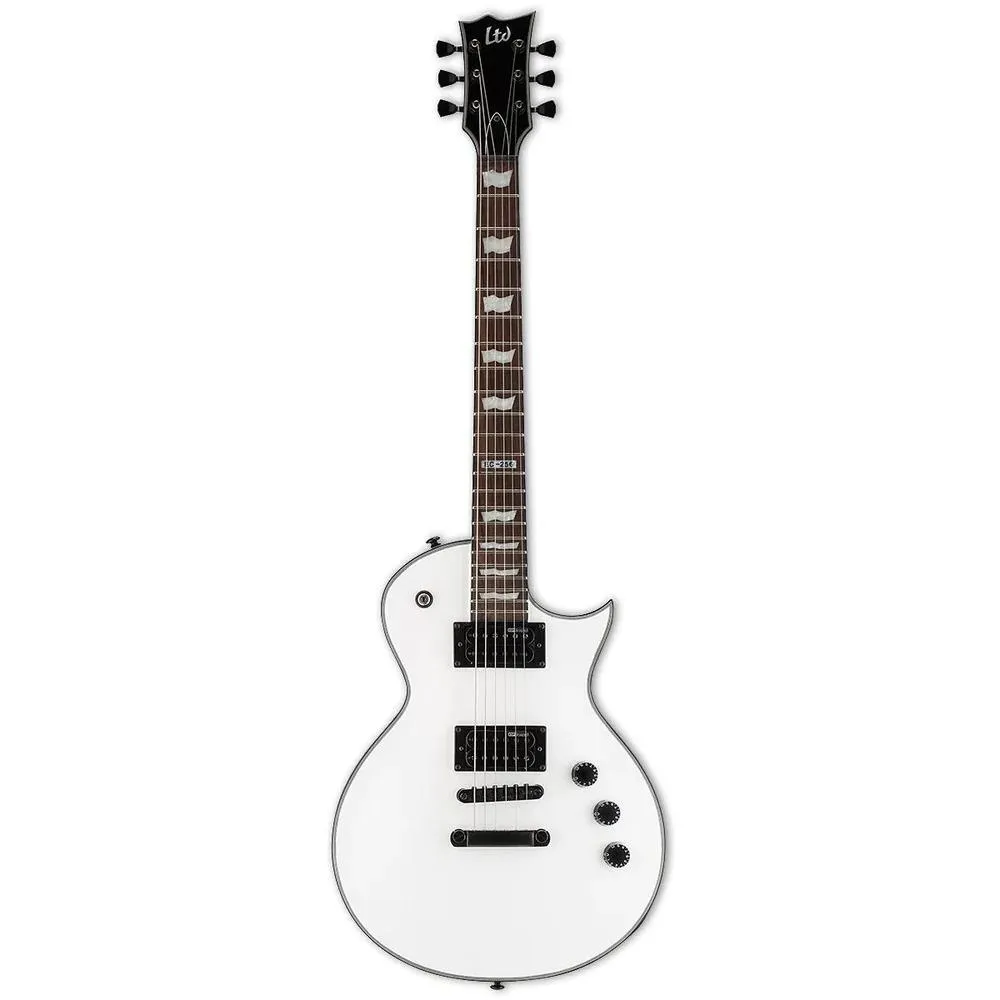 The LTD EC-256 takes many of the coolest aspects of our higher-end EC Series models, and offers them to you in a super-affordable guitar that's ready to rock. A classic shape that's excellent for all musical styles and genres, the EC-256 looks amazing with multiple binding on the body and headstock like you expect from high-quality guitars. Playing the EC-256 is also a dream come true, with set-neck construction for fast and easy access to the highest frets. The EC-256 also features a mahogany body, a comfortable and fast three-piece thin U-shaped mahogany neck, and a roasted jatoba fingerboard with flag inlays and 22 extra-jumbo frets. This guitar features our acclaimed ESP Designed LH-150 humbucking pickups that offer great tone for all genres of music, and the tone flexibility of coil-splitting controlled by a push-pull switch on the tone knob.