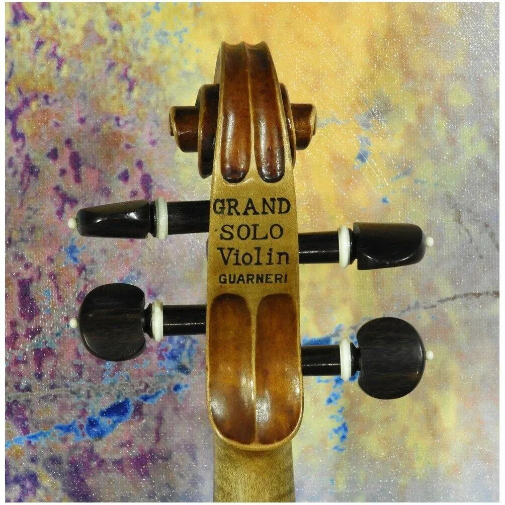 • Back of the peg box, is fire branded the mention, "Grand Solo Violin Guarneri".