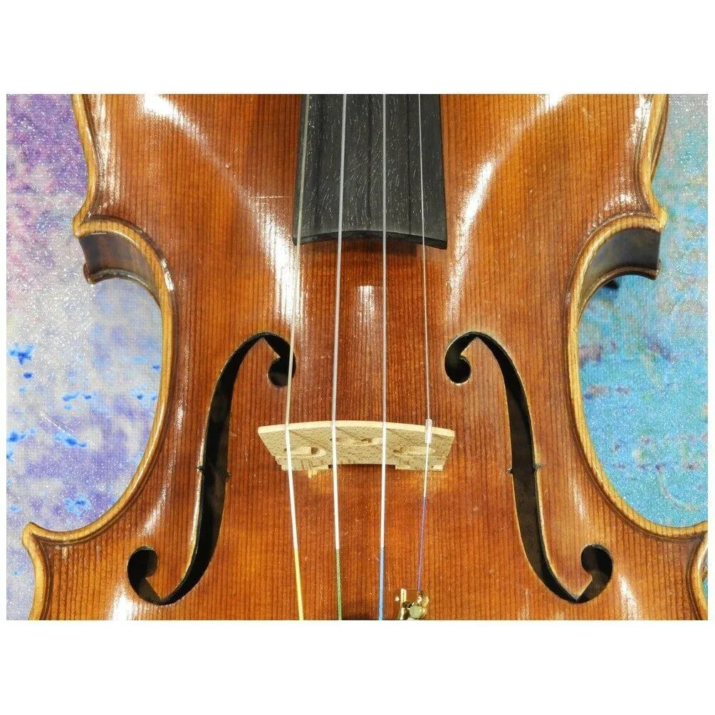 • The instrument has been newly setup, including a new Despiau bridge, Thomastik Dominant strings, and a new set of pegs, tailpiece and chinrest.