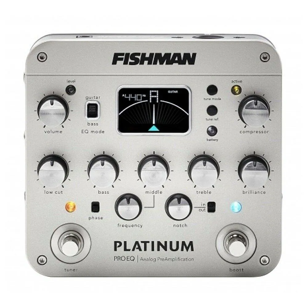 Completely redesigned from the ground up, the all-analog Platinum Pro EQ universal instrument preamp delivers incredibly accurate sonic detail for any acoustic instrument. A discrete, high-headroom Class-A preamp use sprecision, high-speed circuitry for the highest fidelity and low distortion. Classic Fishman tone centers with sweepable mid is combined with a switchable guitar/bass EQ mode, making it more musical for bass instruments and more universal for recording and performing musicians.