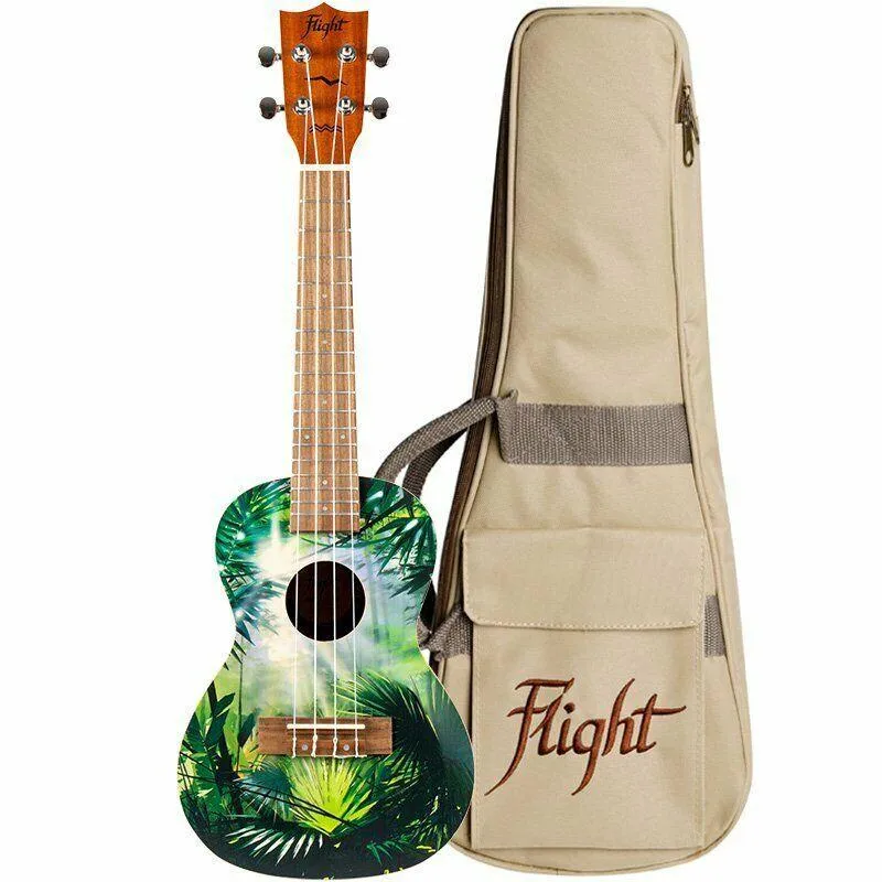 The Flight AUC-33 Jungle Concert Ukulele features a stunning jungle design. Imagine yourself in a wild jungle. It is a hot morning, and you can see the sun rays beaming through the canopy of leaves and the calls of exotic birds. Jungles are beautiful and dangerous at the same time–and the human heart longs to explore them. We wanted to capture that feeling with this stunning design. Match the AUC-33 Jungle with the AUC-33 Orchid ukulele to create the perfect rainforest ukulele collection.