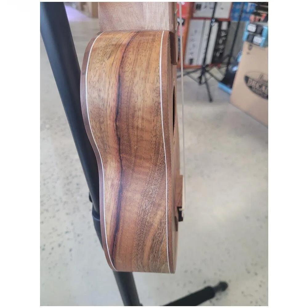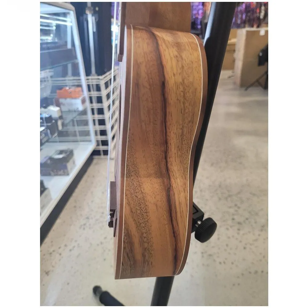 The Flight DUS450 is made from stunning laminate mango. While known more widely for its fruit, Mango trees also yield beautiful and valuable lumber. The wood is considered very eco-friendly, as some Mango plantations harvest the trees for lumber after they have completed their useful fruit-bearing lifespan. Mango shares the same density as mahogany, and if used correctly, can sound even sweeter than koa.