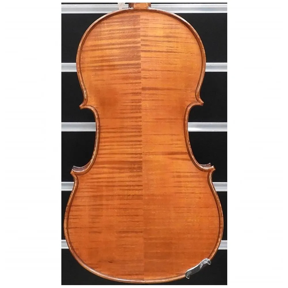 16" "Gliga Vasile Professional" Series Viola. Handcrafted in workshops directly supervised by Mr Vasile Gliga. Highly flamed and naturally aged sycamore maple back, neck and ribs. Close grained Carpathian resonance spruce top. The outline of the instrument's body is deepened and the plates are precisely graduated.Special attention has been given to the deeply etched and well highlighted scroll. A greater number of coats of varnish are applied. All fittings are manufactured by the Gliga company.