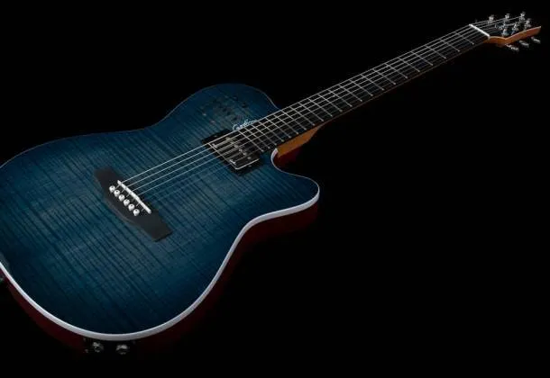 The Godin 047963 A6 Ultra Acoustic Electric 6 String RH Guitar in Denim Blue Flame with Gigbag.