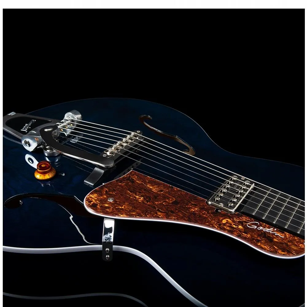 The Godin 047826 is a 5th Avenue Night Club Hollow Body 6 String RH Guitar w Tric Case - Indigo Blue.