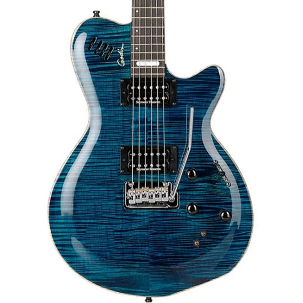 This combination of fast synth tracking and a tremolo system makes for incredible sonic power and delivers it in a very user-friendly, eye-pleasing package. Exquisitely playable with surprising resonance and a vibrant natural tone, the LGXT pairs an ergocut mahogany neck with a sleek and smooth ebony fingerboard and a silverleaf maple body topped by figured maple. The LGXT has dual Seymour Duncan humbuckers-a Jazz II in the neck position and a Duncan-modified Custom Custom in the bridge position; a Godin exclusive. The custom RMC X-Bridge fires the piezo transducer output and the excellent synth-tracking system.