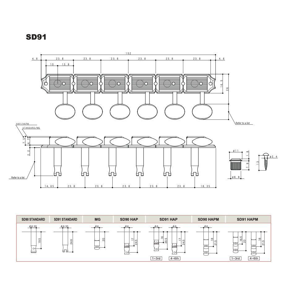 - 6mm diameter string post.