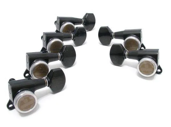 Set of 6 Gotoh SG381-07 '4 + 2' MGT Magnum Lock Traditional Tuning Keys for Ernie Ball Right Hand configuration. The SG381 model are standard issue on most Japan Ibanez Prestige models. The MGT Magnum Lock Traditional locking design is new for 2013.