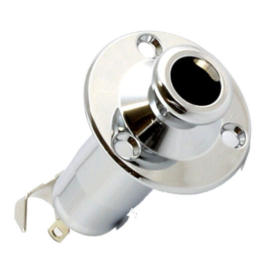 GT Takamine Style Stereo Endpin Jack Socket in Chrome Finish with 3 Screw Mounting Holes (Pk-1)