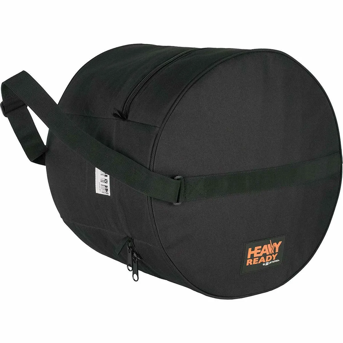 Protec Heavy Ready Series Drum Bags feature dense protective 10mm padding, rugged 600D nylon exterior, oversized dual zippers, adjustable shoulder strap with reinforced stitching, soft non-abrasive lining, and a stylish sizing patch with room to write on (i.e. your name, drum type, etc.) with a marker.