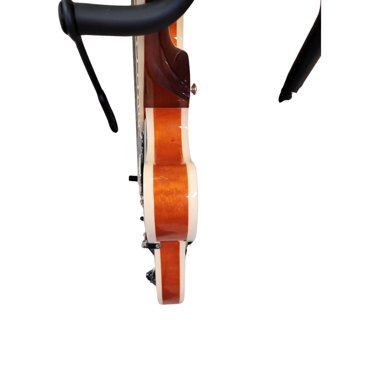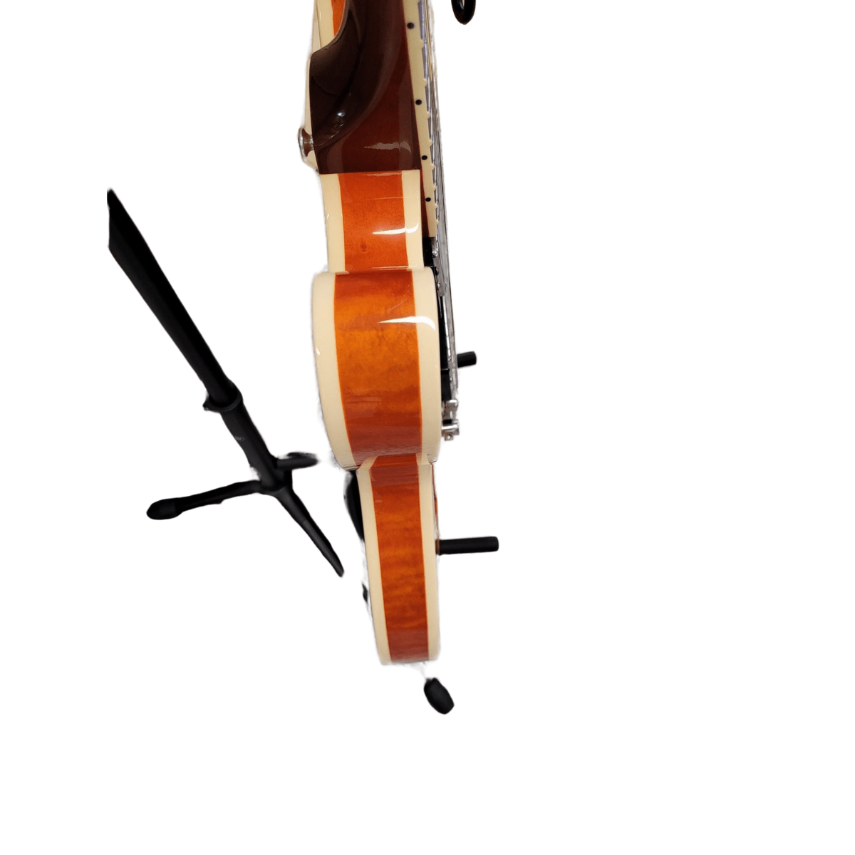 • Solid center block and laminated figured maple construction help control any unwanted feedback issues.