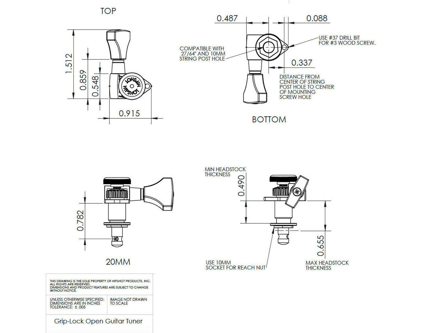 The Hipshot Grip-Lock is proven to hold strings tightly, allowing the guitar to stay in tune to improve playing enjoyment. The Grip-Lock is a mechanical type locking system that can be used on any guitar, including non-trem or acoustic. Upgrade your tuners and improve the tuning accuracy and stability of your 3 + 3 headstock guitar with Hipshot's Tuner Upgrade Kit. With the patent pending UMP (Universal Mount Plate) included free in this kit, tuners will install on most guitars without drilling in your headstock.
