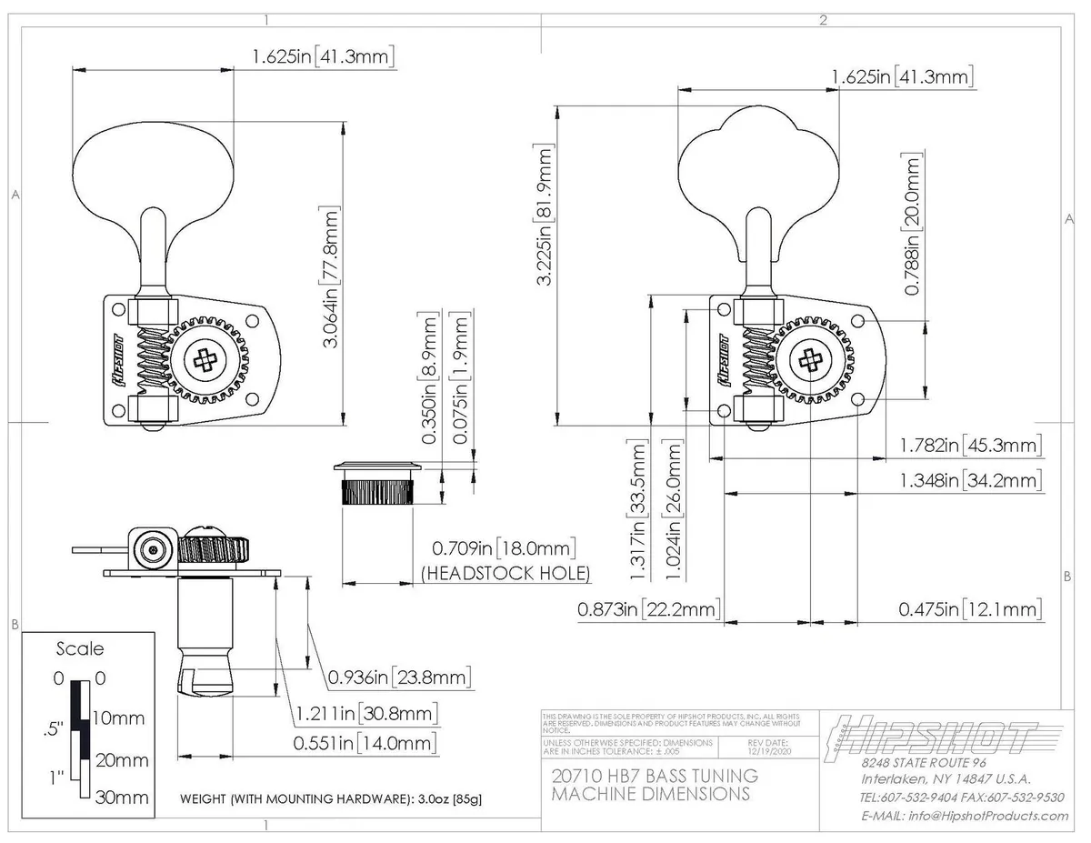 Retire those worn out stock tuners and slap on a set of Hipshot American Classics! The HB7 is a direct replacement for Fender® Highway One tuning machines first featured on many MIM models. It is now a popular choice for many contemporary Fender® basses including Vintage Modified Squire®, USA and Custom Shop models. Many smaller, independent builders have adopted this machine as well.